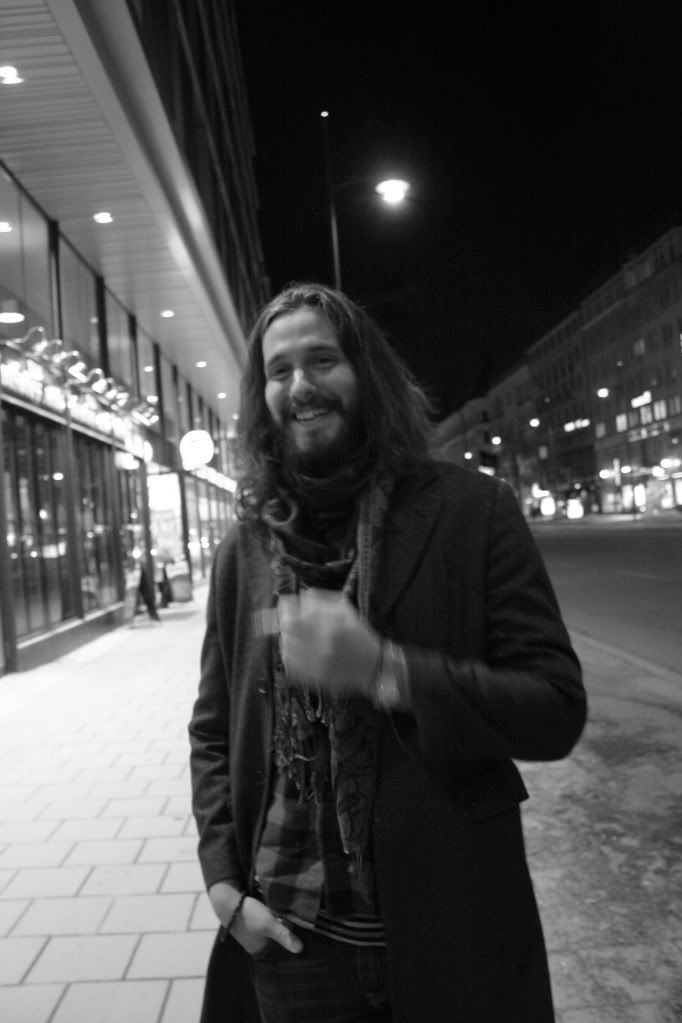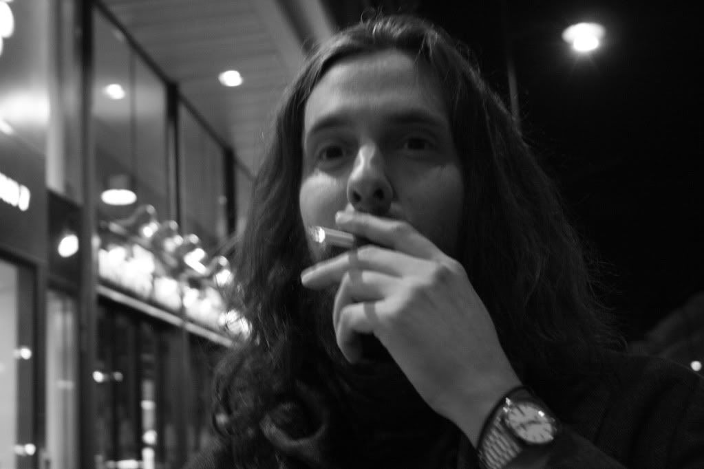 Utanför bild till vänster stod en jävligt preppy blond tjej som kändes mer som en artist än jesus-micke gjorde. De båda var på något stekigt spanskt ställe på vasagatan men puffade nu på gladeliga utanför.